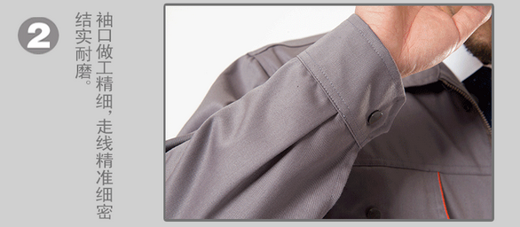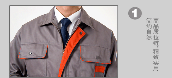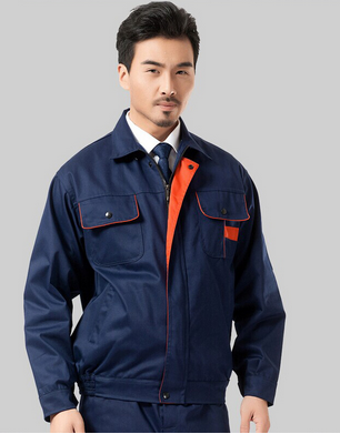 JL-QD248東莞工衣以藏藍色為主色,胸前采用橘色搭配,醒目,工業(yè)感強。前兜簡單,走線細(xì)致,實用性強。左中腰間口袋均采用雙層設(shè)計,傾斜線條,穩(wěn)重大氣 。