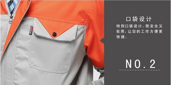 JL-QD253東莞工衣以藏藍(lán)色為主色,胸前衣兜采用紅色撞色拼接,走線細(xì)致,實(shí)用性強(qiáng)。左中腰間口袋均采用雙層設(shè)計(jì),傾斜線條,穩(wěn)重大氣