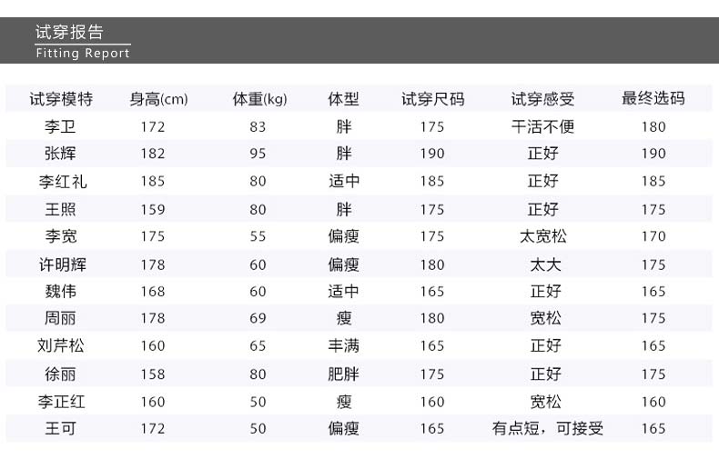 160(S)、165(M)、170(L)、175(XL)、180(XXL)、185(XXXL)、190(XXXXL)